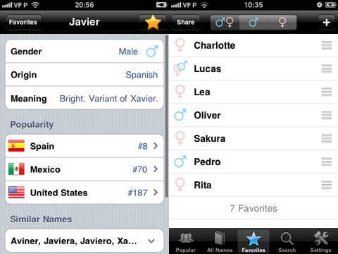 La app cuenta con más de 36 mil nombres de todo el mundo y detalla el nivel de popularidad de cada uno en diversos países. Además, cada nombre incluye el género, origen y significado, así como su evolución a lo largo de los años.