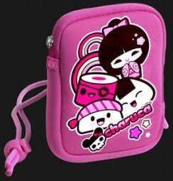 En la gama de Sanrio, con su personaje Hello Kitty, está el modelo Vichy . Este cuenta con un diseño acolchado, que además de cuardar y proteger la cámara digital, te permite llevar otros accesorios gracias a sus dos bolsillos extra.
