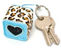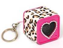 Si eres de las chicas que gustan de llevar accesorios con diseños de moda, este miniparlante será de tus favoritos, pues trae nada menos que la tendencia animal print con detalle de un corazón y aplicaciones de strass en el acabado. A ello se suman los colores celeste y rosado, para que las chicas elijan el que más les combina con su traje del día.