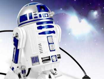 Por ello, como parte del merchadising oficial de Star Wars, se lanzó al mercado un dispositivo Hub de USB para conectar hasta 4 puertos, con la curiosa novedad de que al conectar uno de los puertos, R2D2 hace los mismos sonidos entre pitillos y chirridos que realiza en todas las películas de la saga.