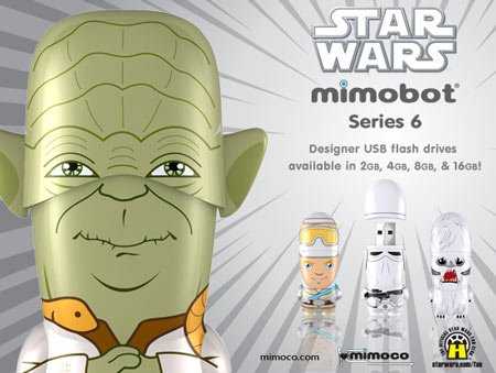 Fabricados por la empresa MIMOCO (empresa dedicada a crear memorias USB con diseños particulares), las Mimobot Star Wars Series 6 están disponibles con capacidades de 2 GB, 4 GB, 8 GB y 16 GB, y una serie de diseños realmente adorables. Son hasta el momento 15 los modelos que representan a entrañables personajes de las dos trilogías de la saga.
