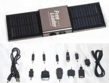 Para no quedarte sin pila en la playa, puedes pensar en llevar contigo un cargador solar. Este modelo llamado Free Loader recarga pequeños aparatos electrónicos de varios tipos. Viene con 11 adaptadores y es compatible con iPods, teléfonos celulares, cámaras chicas y dispositivos GPS.