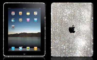 Como no podía faltar, los ideólogos de los artilugios fashion, pensando en nosotras, ya han creado accesorios para este aparatito. El que presentamos a continuación está pensado sin duda para un público súper pudiente: nos referimos a una cubierta o forro para el iPad con incrustaciones de diamantes, el cual cuesta la friolera suma de 20 mil dólares.